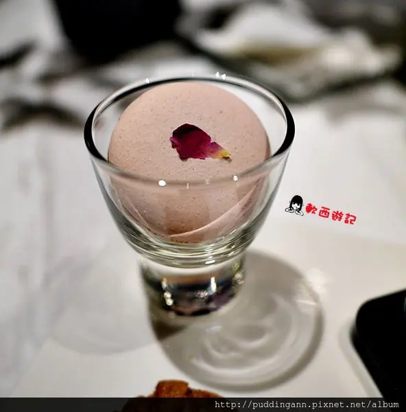 上面還有一片風乾的玫瑰花片~吃起來甜甜淡淡玫瑰清香配上酸酸覆盆子,只吃一個意猶未盡阿