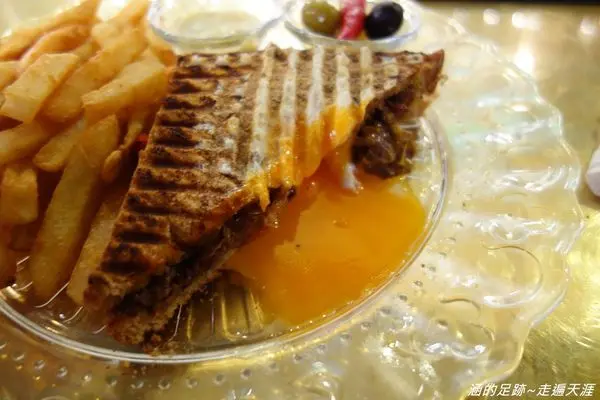 上次吃的費城牛肉帕尼尼讓我很驚豔,所以這次一樣選了鐵板帕尼尼系列裡的紅酒奶油牛肉帕尼尼。一樣加了$30元的經典洞見蛋。