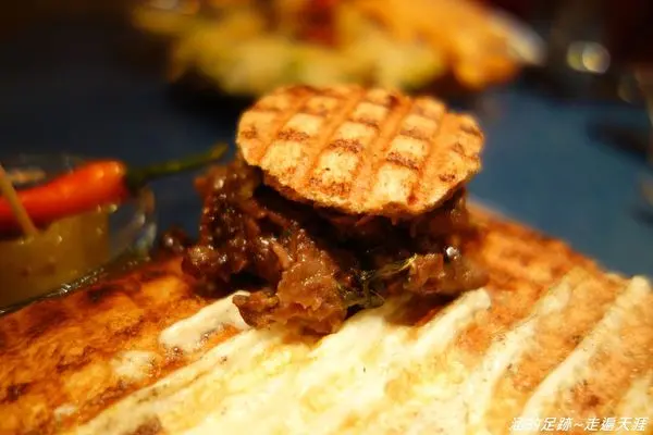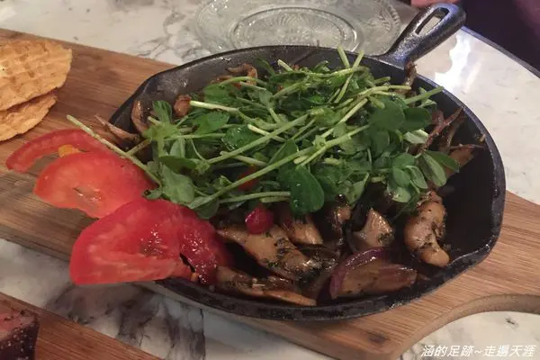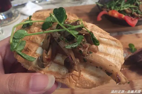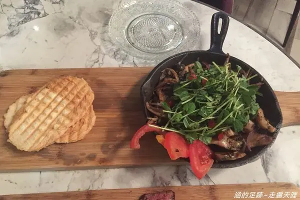 這次來吐司利亞我們沒點帕尼尼,而是選了menu前面Tapas裡的嫩烤牛肋排。印象中點餐時服務人員有跟我們說明這道菜現在牛肉的部位已經不是用牛肋排了,至於是改用哪個部位的牛肉,那天小涵和朋友聊得太開心了所以已經忘記了。