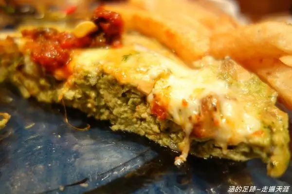 這個西班牙馬鈴薯烘蛋好好吃喔!烘蛋本身有加菠菜與焦糖洋蔥,但菠菜的味道不會太過濃郁,搭配得剛剛好。