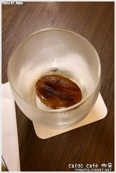 杯內的冰滴咖啡冰塊,還做成咖啡豆的形狀