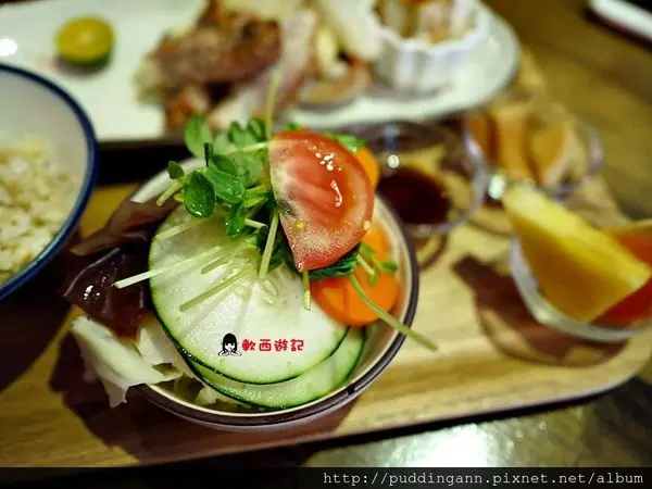 一整個日式風格好多小菜配菜XD有沙拉、蘆蔔醃漬物、豆腐涼菜、醬料等等好豐富