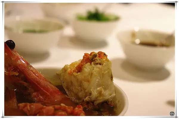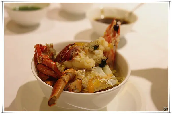 第一碗,明蝦、紅蟳及龍蝦滿滿一碗真不知該從何下手。