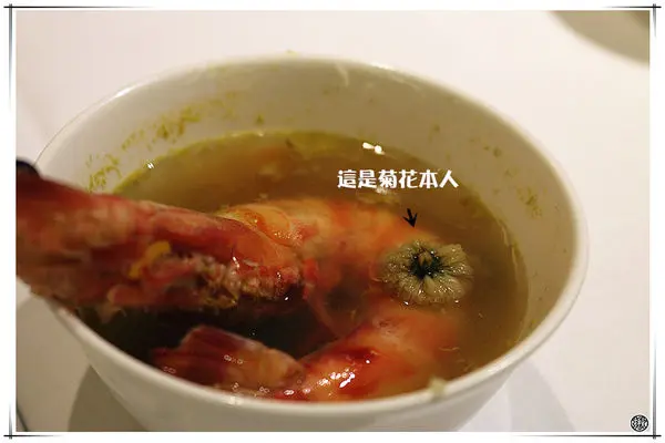 第三碗。意外吃到菊花後就一整個愛上,入口後淡淡菊花清香飄來,菊花的數量不多害我很想要加點!原先服務生在詢問要喝甚麼熱茶時阿揪也想選菊花茶的說...