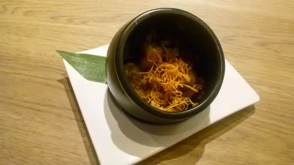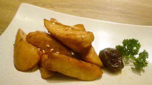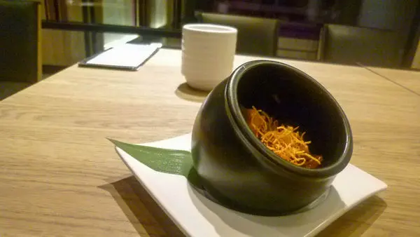 前菜,杏鮑菇,撒有芝麻和香料,鮮甜多汁,還附上酸梅調味。