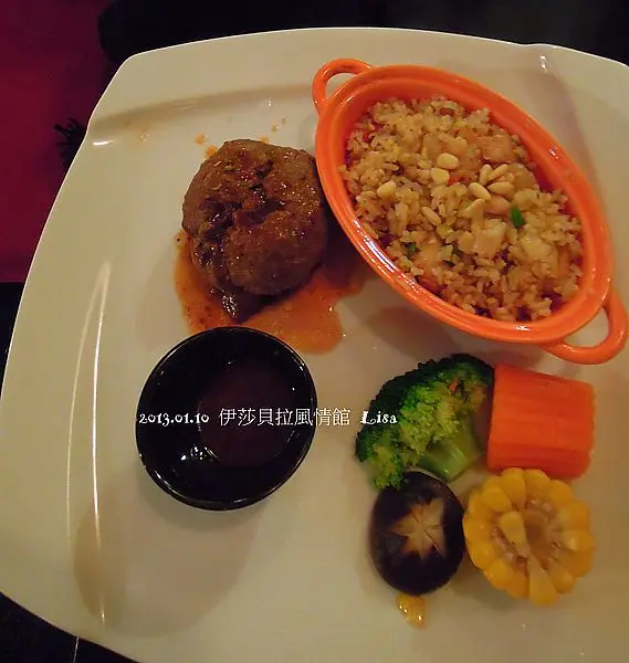 依照友人的說法是漢堡排的肉太老(扣分),但是蝦仁炒飯就很好吃,這個炒飯一上桌的時候就被它的香氣給迷惑了。