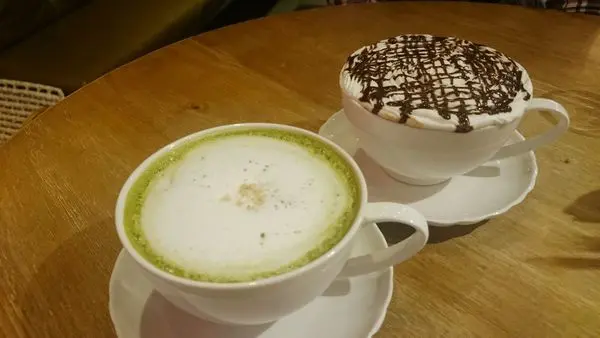 飲料分別為抹茶拿鐵(新品) 和 摩卡。