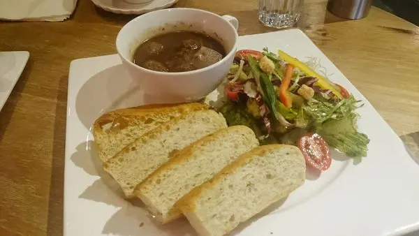 鹹食都附有一份生菜沙拉,特別的是加了秋葵、紅黃椒、小番茄,淋上油醋醬吃來很爽口。