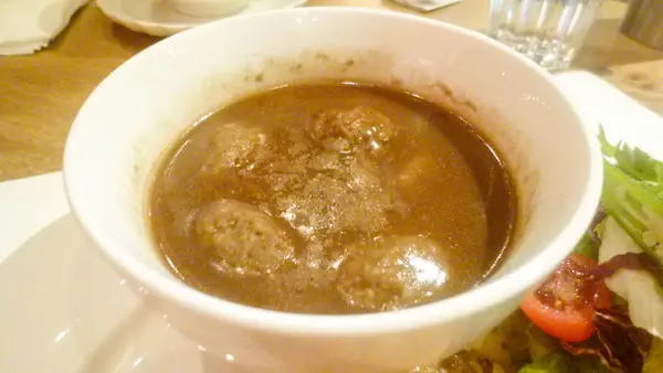 佛卡夏麵包切成四份長條塊,朋友很懂吃,還將麵包沾著牛肉丸的醬汁食用,更增添了麵包的層次感。
