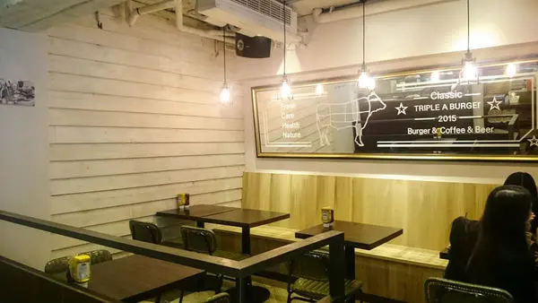 Triple A Burger店內空間並不大,約有二十來個座位,我們一行人就佔了七個位,