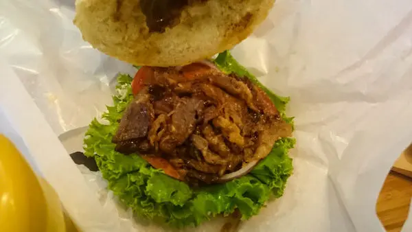 然後,這是朋友的烤肉堡,看起來也好美味,據說口感就是韓式燒肉,微甜的調味很開胃。