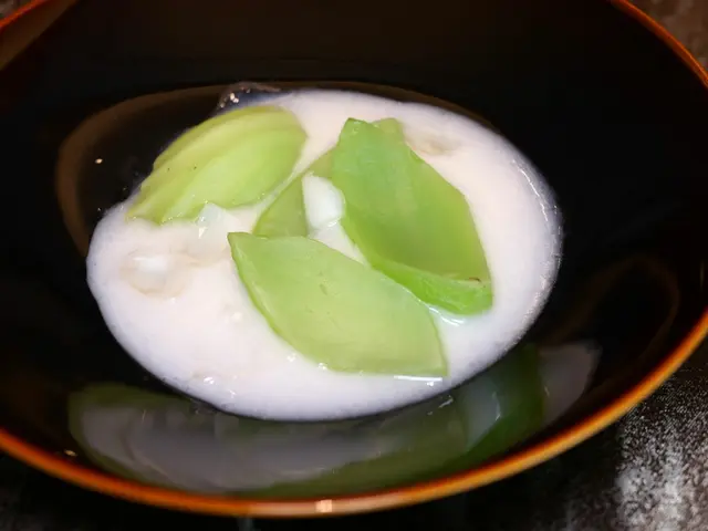 用粥糜上層的稠湯、濃濃的米甜來搭芥菜,再放入少許好吃百合。