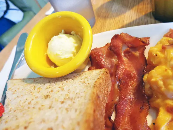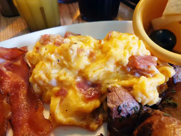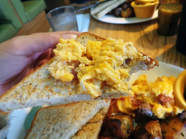 這是我點的起司培根炒蛋,本來在炒蛋跟美式蛋捲(歐姆蛋)之間猶豫,