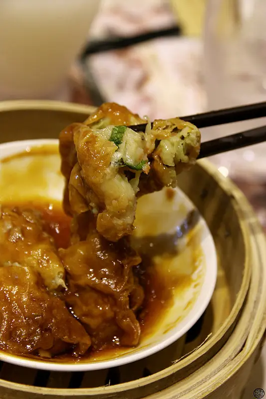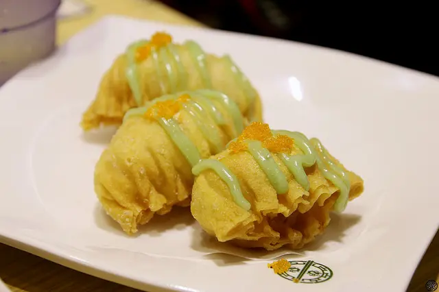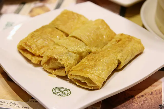 炸過的腐皮卷一點也不油膩,一送上桌切成六小塊方便好食。