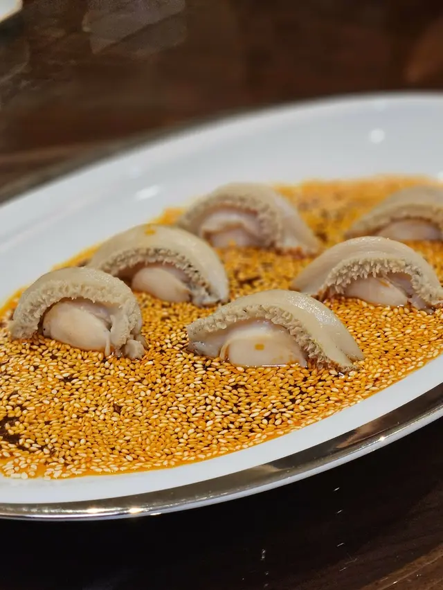 此道別名"沙丘"(誤),涼菜,鮑肉軟糯入味帶鹹,紅油說是麻辣卻很輕盈,這醬汁適合外帶回家拌麵。
