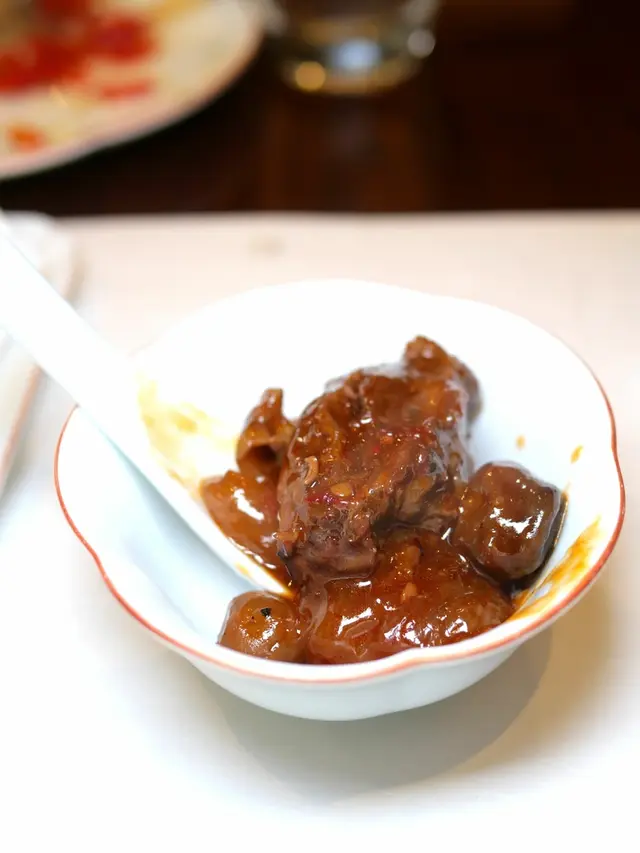 (冰糖蓋子頭,這是我當年初訪吃過的菜,豬膝蓋的皮筋,皆滷透了,與紅麴尾巴口味相似)