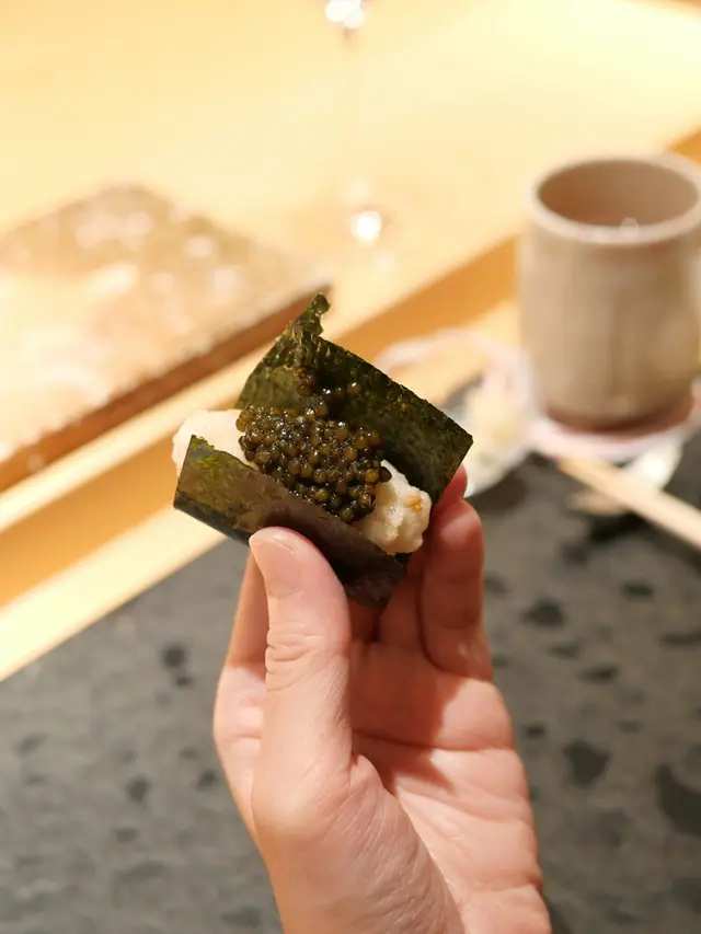 (炸麻糬魚子醬,想起辰壽司割烹的炸銀杏麻糬也很好吃)