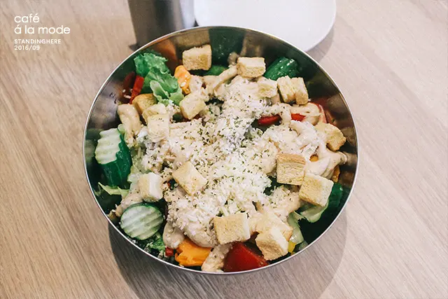 滿滿的沙拉用鐵盆裝著, 份量著實不少,