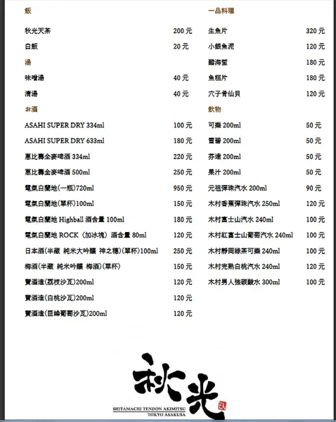 主要餐點分:天丼與天麩羅兩大類
