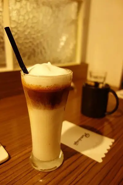 大廚點的是香蕉拿鐵($160)和手工麻吉起司蛋糕,香蕉拿鐵真的有香蕉味,超級出乎我的意料之外,不過喝起來是咖啡水水的口感,沒有那種香蕉稠稠的感覺,所以我猜裡面加的應該是香蕉糖漿吧。