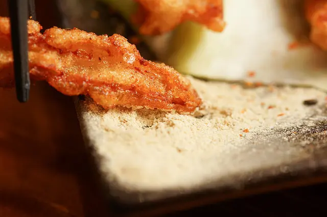 表面撒上椒鹽 有點微辣 但也因此更加提味
