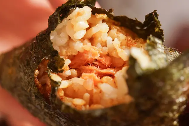 內裡藏著驚喜的鮭魚肉 鮭魚有調味過 味道較鹹
