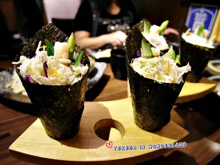 酥脆海苔包裹著鮮甜蘆筍、鮮蝦、生菜絲,再由美乃滋做最後點綴,口感相當清爽!