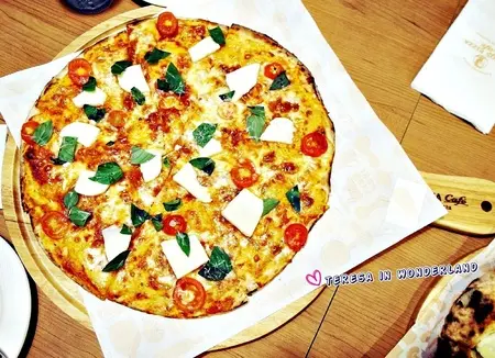 瑪格麗特Pizza是義大利人的最愛,也最能吃出Pizza的原味呢!Tino的瑪格以紅醬為底,撒上起司絲、小番茄、帕達諾、Mozzarella起司片、最後再以蘿勒點綴提味