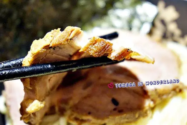 炙烤過後的叉燒,帶著種燒烤特殊香氣、但卻不失豬肉本身的甘甜美味,約0.5比1.5的肥瘦比例,吃起來可說是相當軟嫩!!實在是歐伊系阿