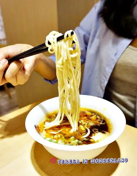 大口吃下,泡過冰水的拉麵,本身口感Q彈有嚼勁外,黑麻油香氣、與微辣的麻油滋味頓時瀰漫口中,相當夠味!實在好食阿!!