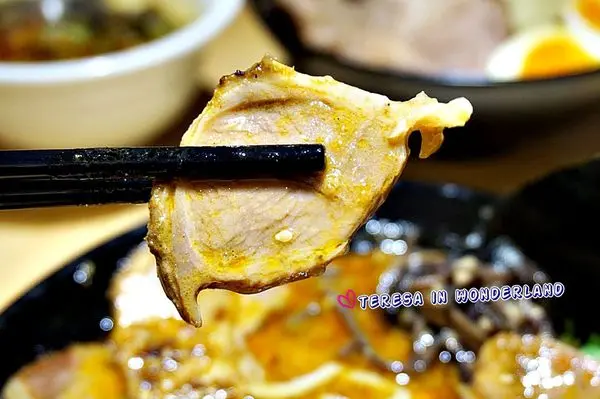 叉燒肉質同樣是相當軟嫩,因著上頭的辣油,又多添了分滋味,好好吃阿!!(扭扭扭