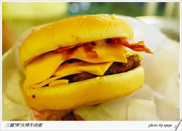 兩層牛肉之上也各有一片起司(所以比三層「犇」牛肉堡少一片),