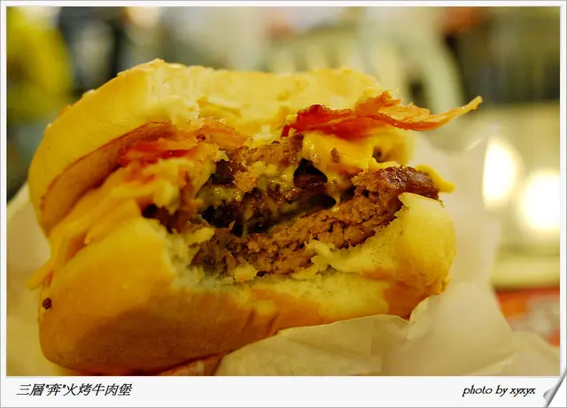 乍看之下看不出來有三層牛肉,咬幾口就可以看出來