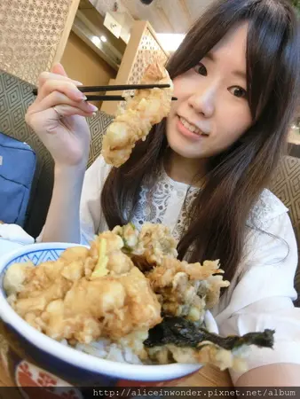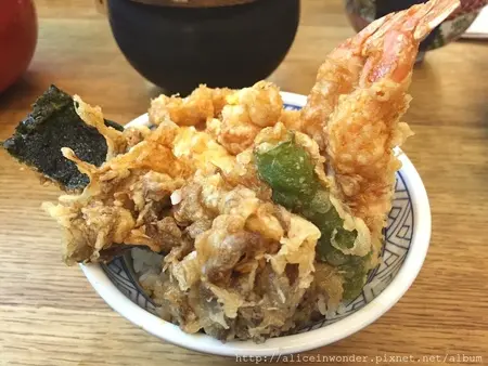一碗天丼裡頭有兩隻大蝦真令人滿足,