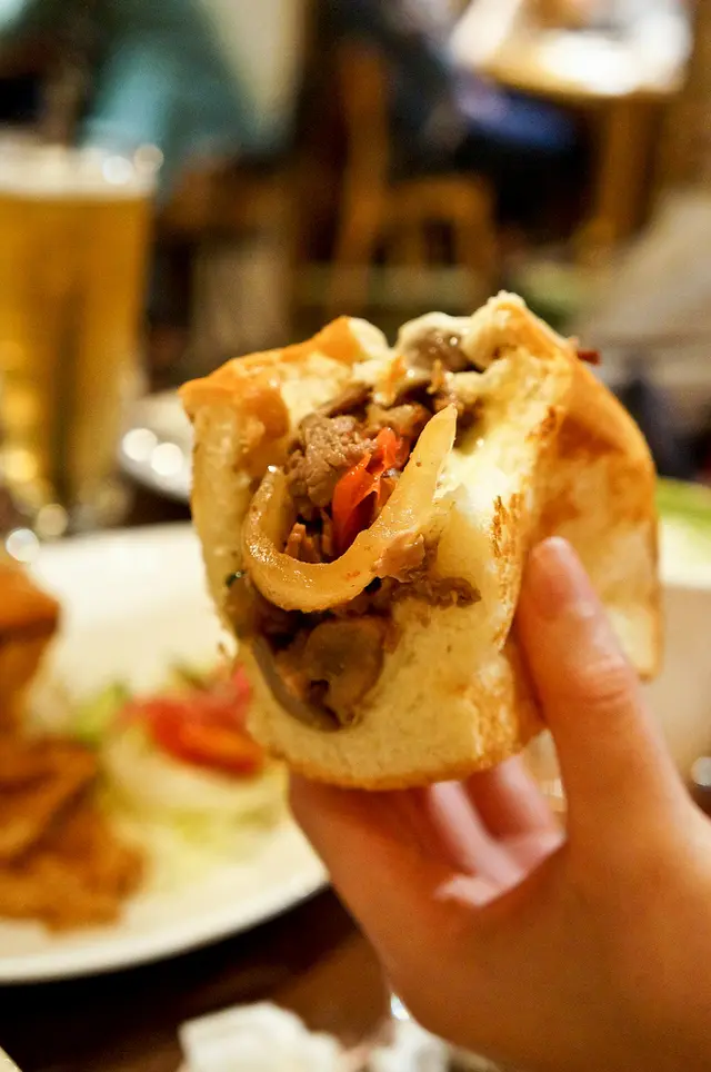 內餡的沙朗牛肉與洋蔥一起拌炒 有點東方的口味~~