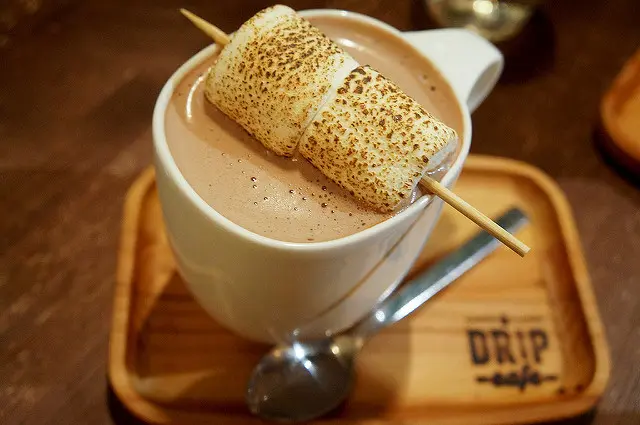 放在熱可可上的棉花糖 還會因為熱氣 越來越融化喔!!