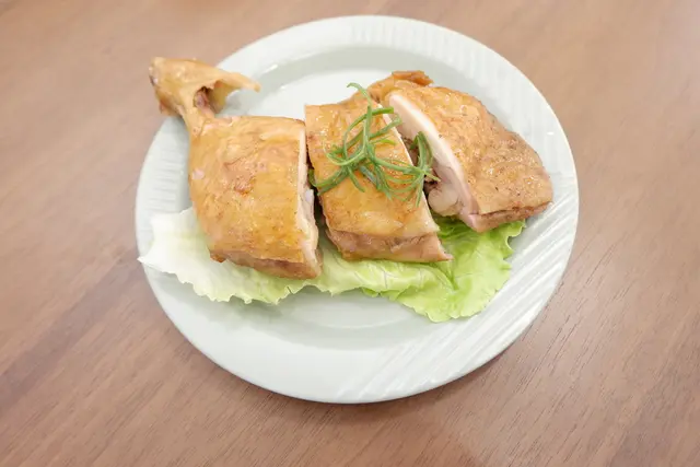 鹽焗雞腿是當天現做,多汁鮮甜,選用八角炒製220度溫度的粗鹽,必選用最新鮮的新鮮現切雞腿來整隻滷製熬煮,肉質鮮嫩又入口即化,喜歡吃雞腿的人一定要點來吃吃看!