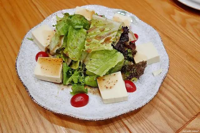 為了彌補主餐缺乏纖維質另外加點的沙拉,嫩豆腐、生菜、油醋醬汁,很好想像的風味,適合兩三人一起分享。