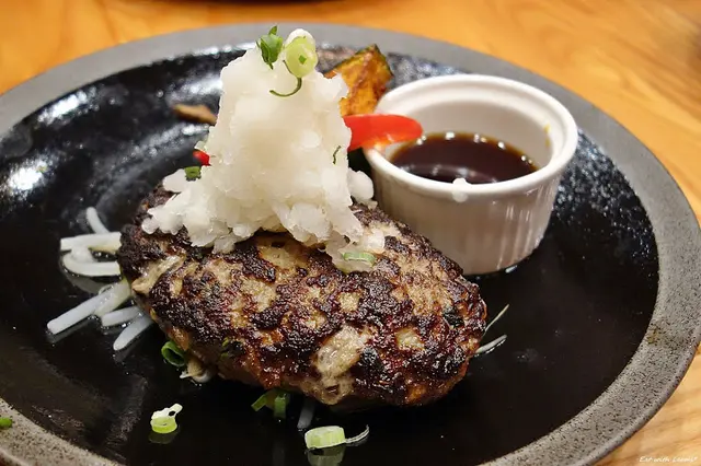 柑橘醋蘿蔔泥漢堡排 320元 (左下)