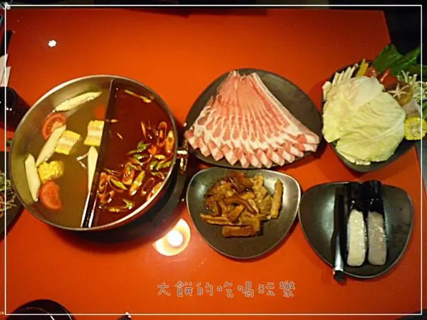 鴛鴦鍋底、台南溫體牛、豬五花、手打花枝/蝦仁漿、