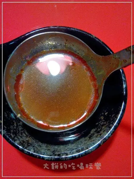 麻辣這邊則是只看到浮在上方的蒜片 紅紅的看起來挺嚇人的