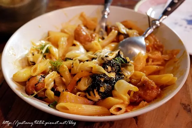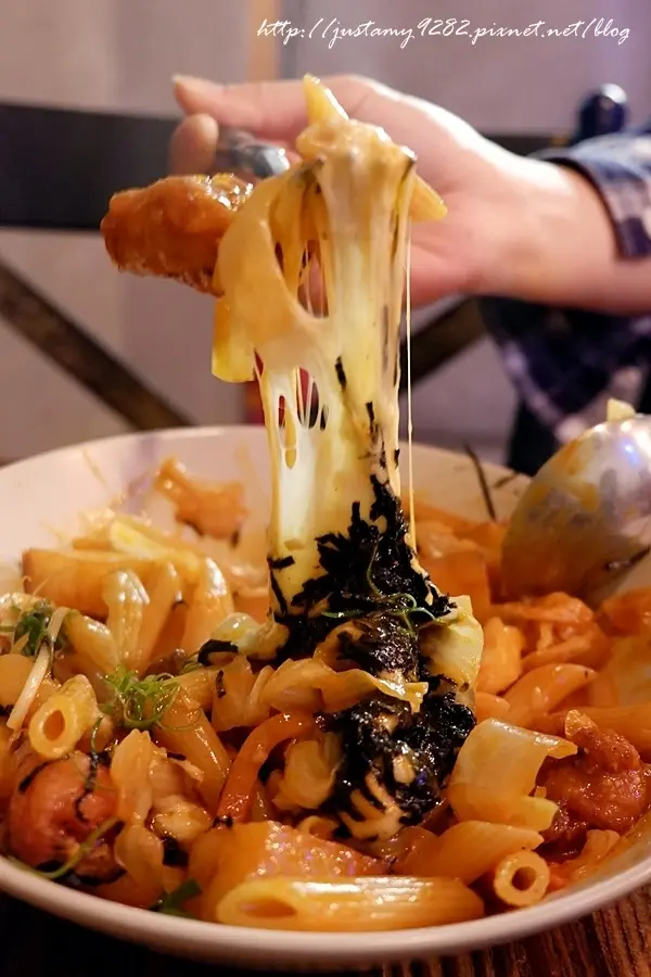 接著登場的是富含視覺效果の辣味嫩雞瘋狂起司筆尖麵 NT420