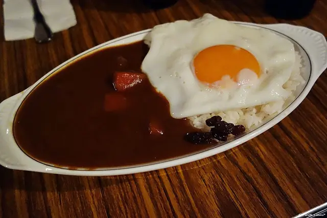 正餐選擇很單純,就是兩種口味的咖哩,搭配白飯或通心麵,每份180元,比起上回有小幅調漲,最熱門的加點項目是20元的荷包蛋,這裡的咖哩飯也可以外帶,價格為125元。