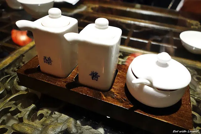 桌上事先擺著調味料,辣油,醬油,醋應該是鎮江醋,氣味酸香,個人吃水餃的沾料習慣是愛烏醋多過白醋所以還挺開心的,至於辣椒香氣辣味好像都還差了一些,嗜辣如我嚐來並不是很過癮。