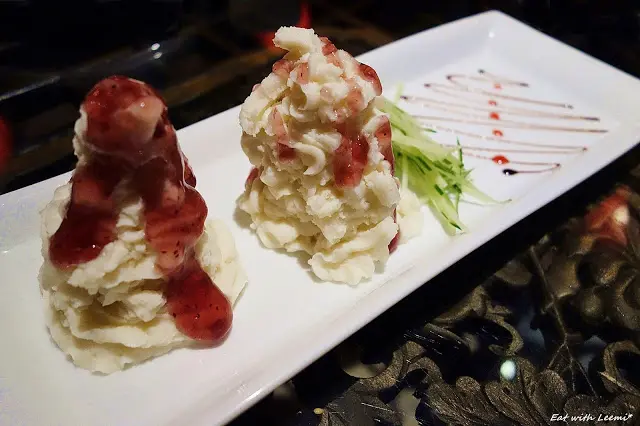 大陸當地所說的土豆其實就是我們的馬鈴薯,所以這道顧名思義就是北京風味的馬鈴薯泥,只是上頭淋的是藍莓醬,加上薯泥本身就有些甜甜的味道,拿來做前菜大家不是很捧場......