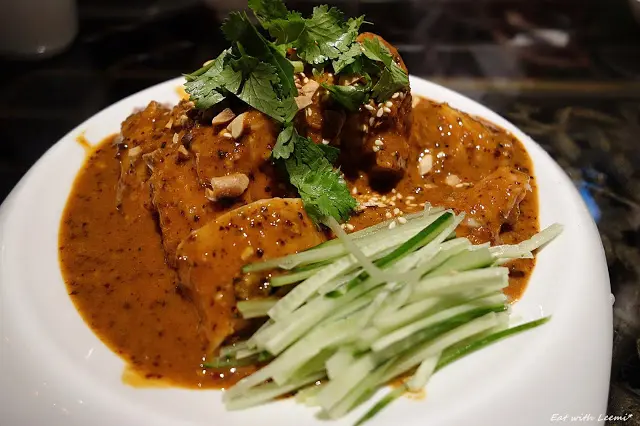 餡老滿的口水雞評價有些兩極,畢竟是在主打北京料理的地方吃四川菜,不過那特調醬料我個人其實還挺喜歡的,道不道地是不曉得,但麻香中明顯帶甜很合我口味,但底下的雞肉我不喜歡,碎骨不少吃來挺麻煩的。