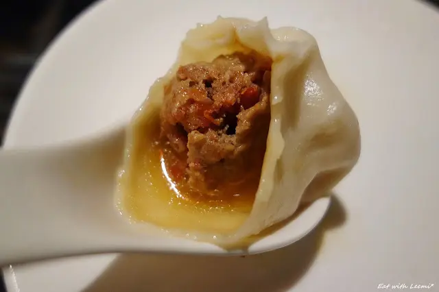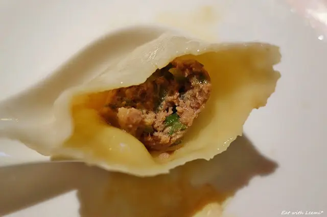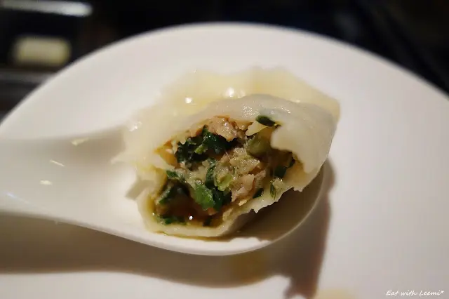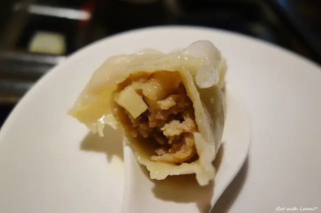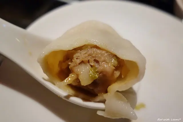 平日不怎麼吃羊肉,不過這款因尖椒本身風味強烈所以不覺得有什麼羊羶味,還稍微帶點辣感,個人也挺喜愛的,餡料同樣經過打水的過程,湯汁很多,雖然餃子們價格都偏高但確實有水準,和餡老滿其他的菜色相比亮眼許多。