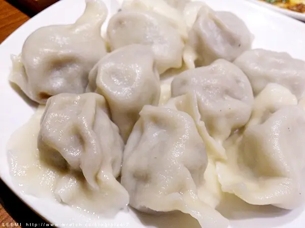 餃子個頭都算大且份量實在,現包現煮的好處就是外皮光滑光亮的樣子,那些事前做好凍太久的可就沒這種魅力,招牌的老滿餃子是豬肉加上蝦仁與韭菜、雞蛋的內餡,餡料飽滿且帶湯汁,調味下的夠所以更襯的出內餡滋味,外皮的厚度亦很討喜,有勁度與食感,和內餡比例又能均衡搭配,是好吃的水餃,可惜這一顆單價連服務費要11元,好規好但可不能常吃啊。