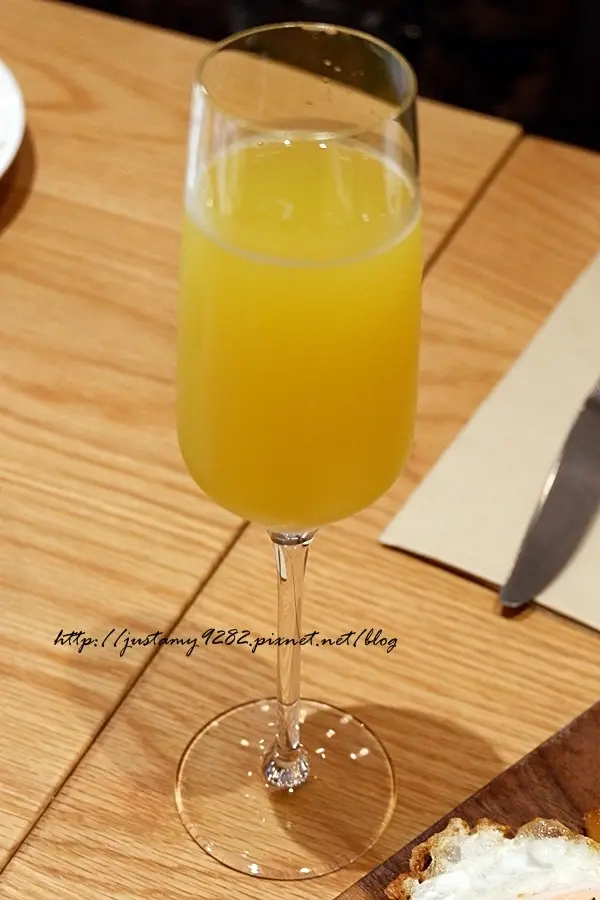 而這杯看起來像是柳橙汁的飲品其實是杯名叫含羞草氣泡調酒(Mimosa) NT250