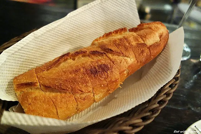 應該是點餐就會附的麵包,量還不少,因為我們事前不知道有這項,等麵包送上桌才覺得菜點太多了,沒想到和菜配著慢慢吃到最後也清完了,麵包外層硬脆,內層組織有我喜歡的軟彈濕黏感,配著後頭幾道菜吃挺不錯。